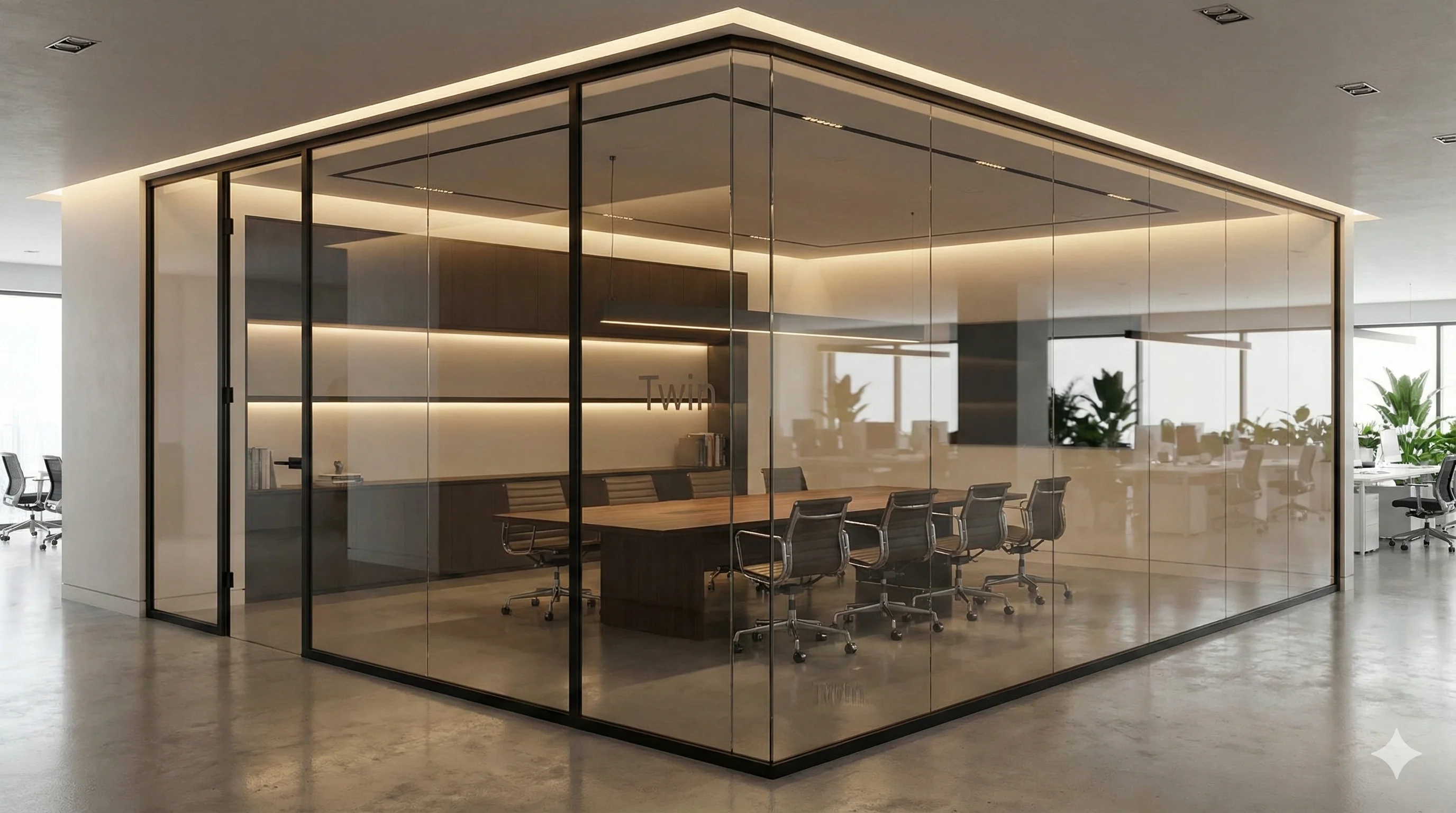 Полномасштабные стеклянные перегородки для киносъёмок за 48 часов. Демонтаж без ущерба базовой отделке.